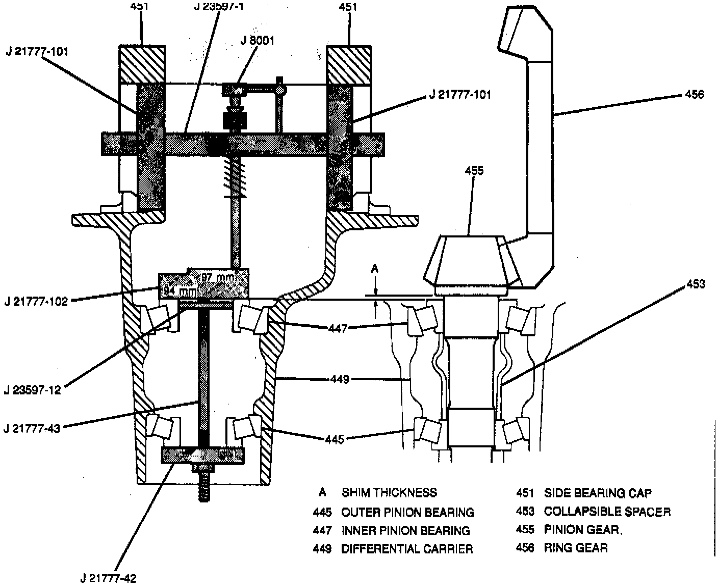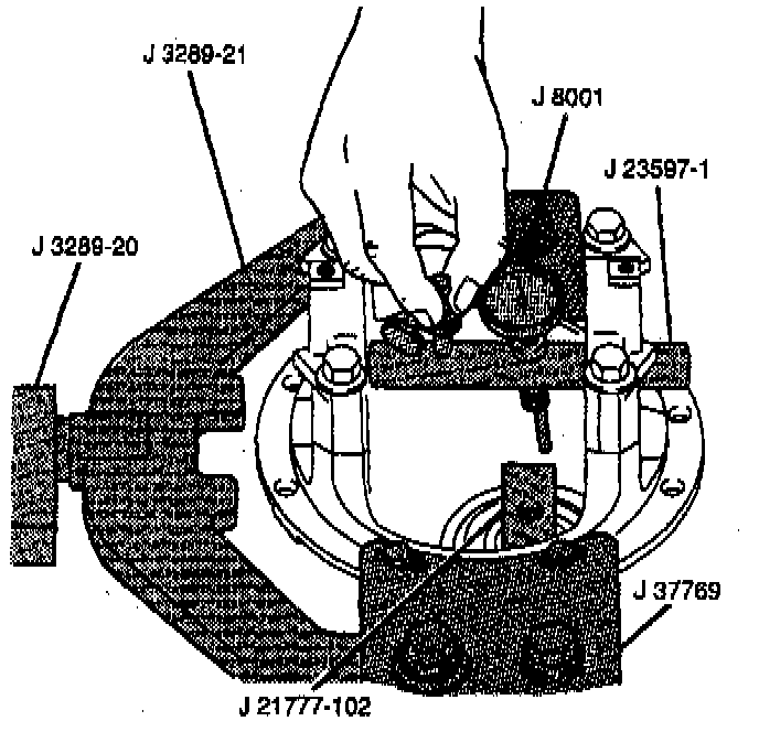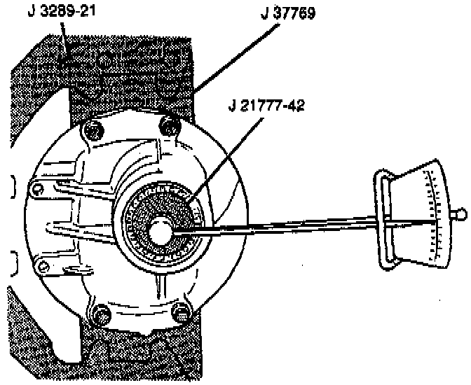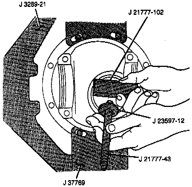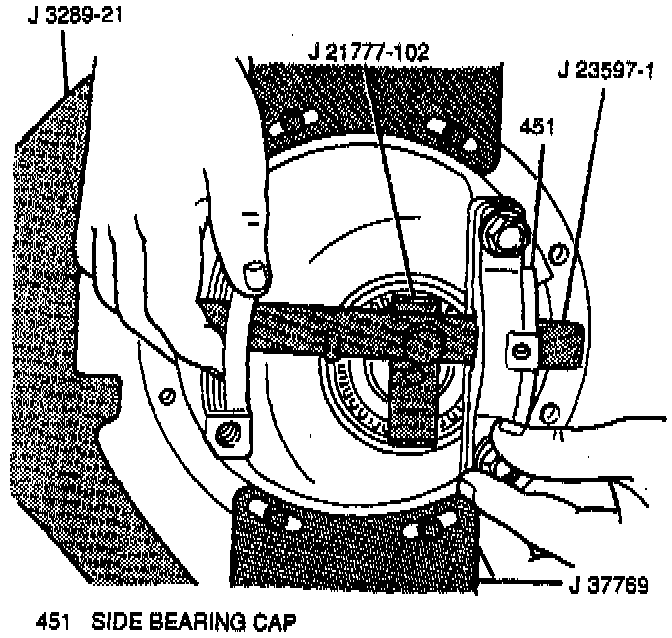 6. Install the J 21717- 101 in the side bearing bores with J 23597-1 through both side bearing discs.