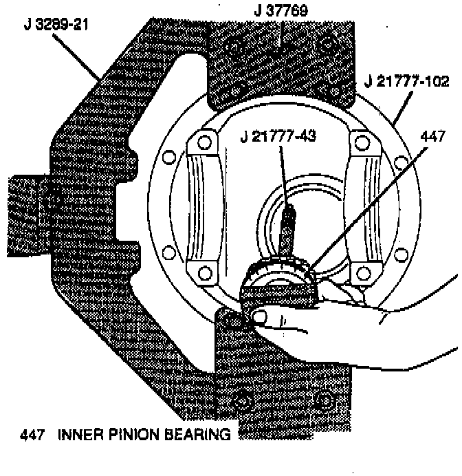4. Rotate the J 21777-102 25 revolutions to make sure the pinion bearings are fully seated.