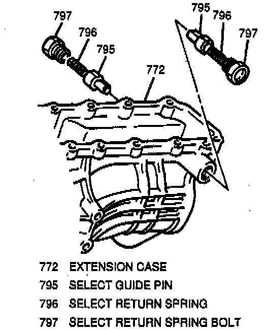 INSTALL OR CONNECT1. Two select guide pins, two select return springs and two select return spring bolts into Extension case.
