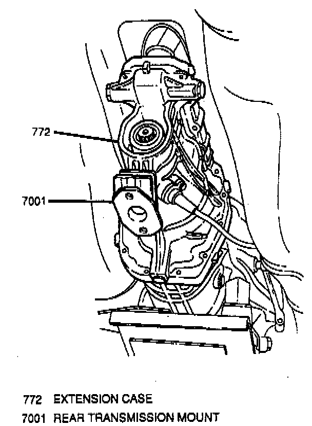 9. Rear transmission mount to extension case; secure with one bolt.