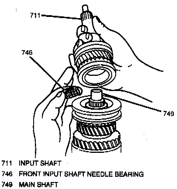 1. Input shaft with input shaft needle bearing onto main shaft.