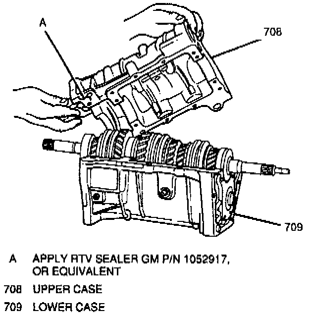 4. Apply Loctite 599 RTV silicone sealer, or equivalent, to the upper case mating surface.