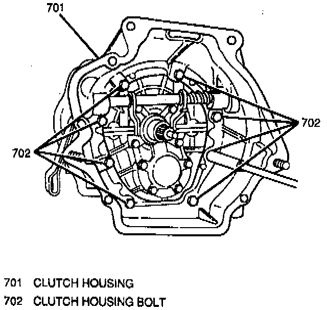 - Tighten clutch housing bolts to 45 Nm (33 ft. lbs.).
