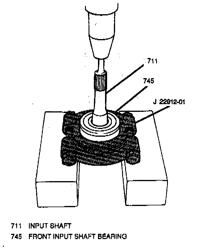3. Front input shaft bearing from input shaft using J 22912-01 and a press arbor.