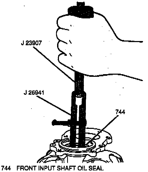 4. Front input shaft oil seal from the input shaft bearing retainer using J 26941 with J 23907.