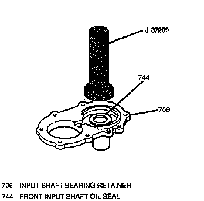 2. New front input shaft oil seal into the input shaft bearing retainer using J 37209 and hammer.