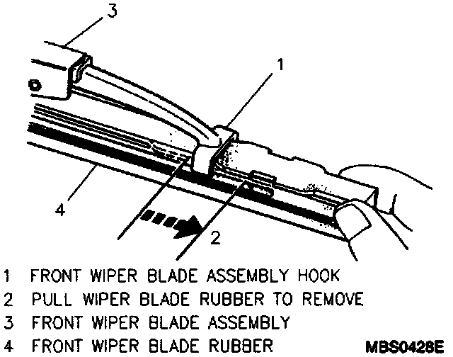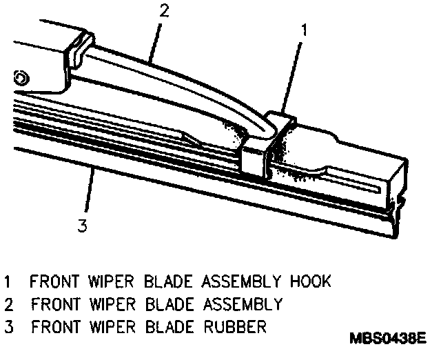 1. Pull the front wiper blade rubber out of the wiper blade assembly hooks.