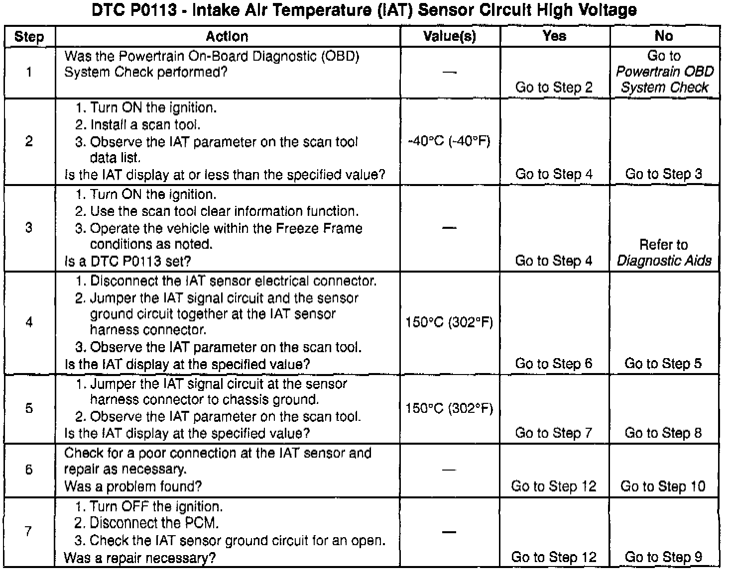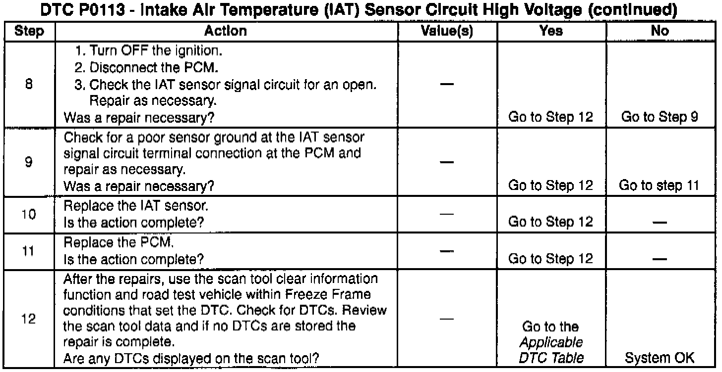 If the DTC P0113 cannot be duplicated, the information included in the Freeze Frame data can be useful in determining vehicle operating conditions when the DTC was first set.