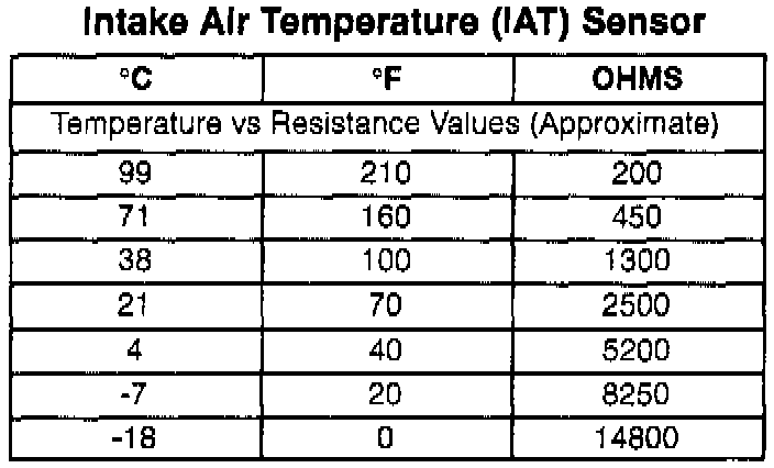 - When replacing the IAT sensor the Temperature to Resistance Value scale may be used to test the sensor at various temperature levels to evaluate the possibility of a shifted (incorrectly calibrated) sensor. A shifted sensor could result in poor driveability complaints. Refer to Powertrain Control Module and Sensors for additional IAT sensor specifications.