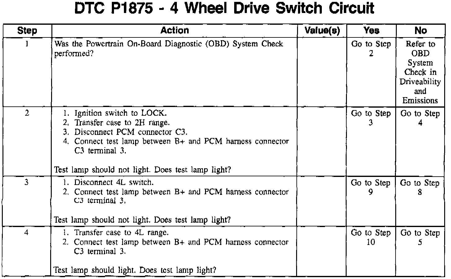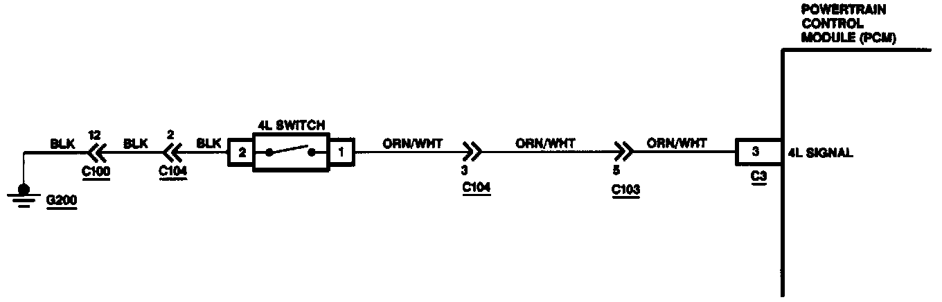 The Powertrain Control Module (PCM) determines when the vehicle's transfer case is set in 4L position through the 4L switch. The 4L switch closes then the transfer case is set in 4L. The 4L switch, when closed, ground the circuit to the PCM C3 terminal 3. The PCM uses this information to prevent Torque Converter Clutch (TCC) lock-up and 4th gear engagement.