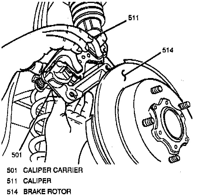 8. Suspend caliper/caliper carrier with a wire to prevent damage to the brake hose.