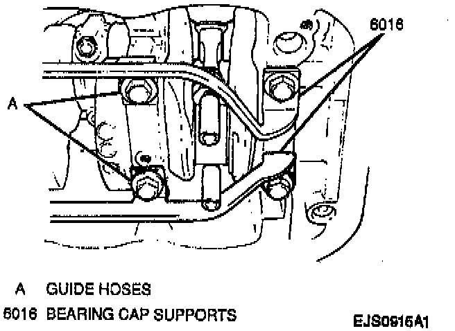2. Guide hoses over the connecting rod bolts to prevent damage to bearing journal and connecting rod bolt threads when installing connecting rods.