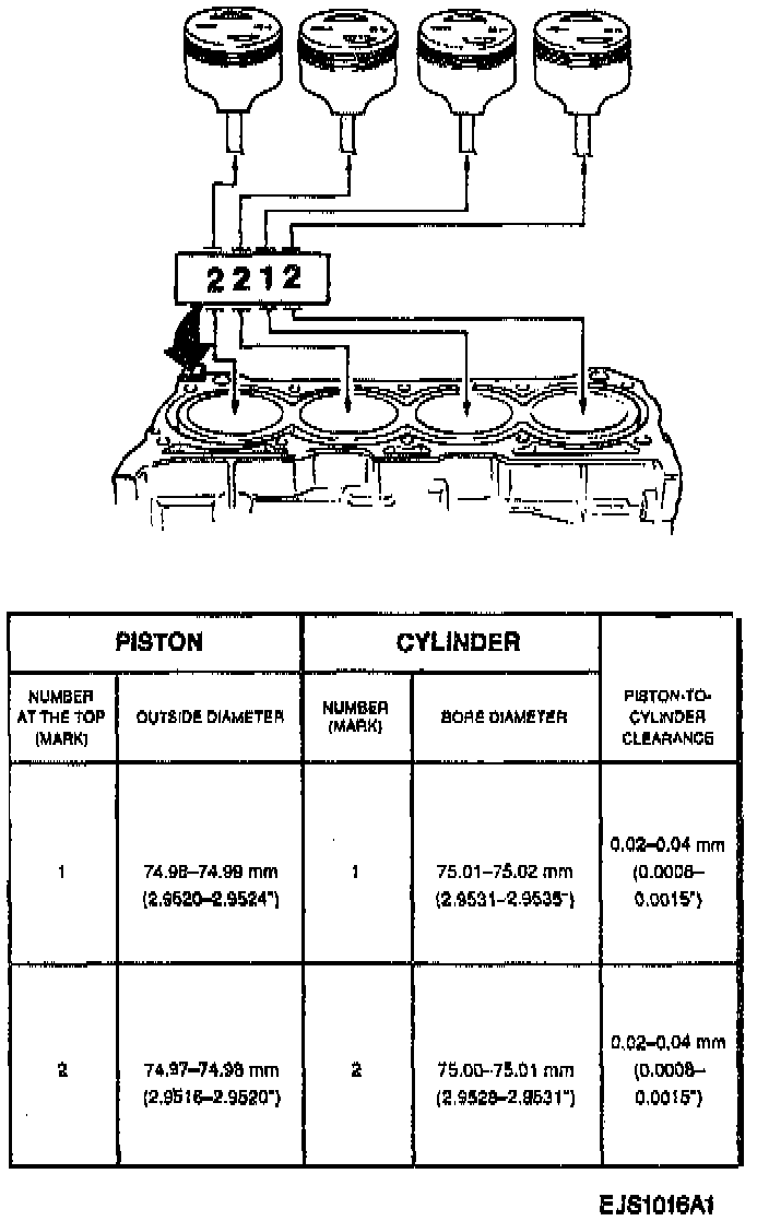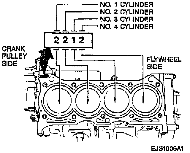 B. There are also stamped numbers 1 or 2 on the cylinder block. The first number indicates the inner diameter of the No. 1 cylinder, the second number, the No. 2 cylinder, the third number, the No. 3 cylinder, and the fourth number, the No. 4 cylinder.