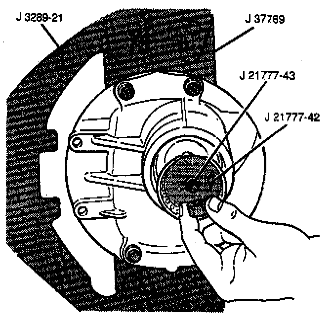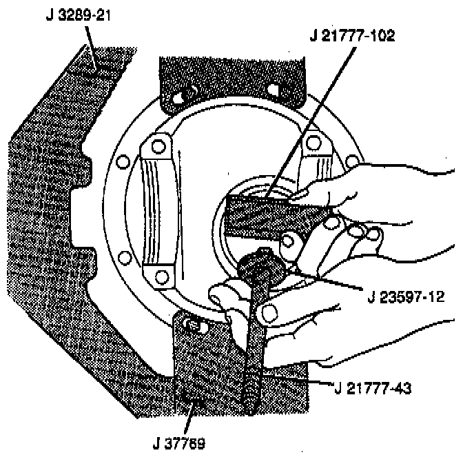 17. Remove J 21777-102, the J 23597-12, the J 21777-43 and the J 21777-42 from the differential carrier.