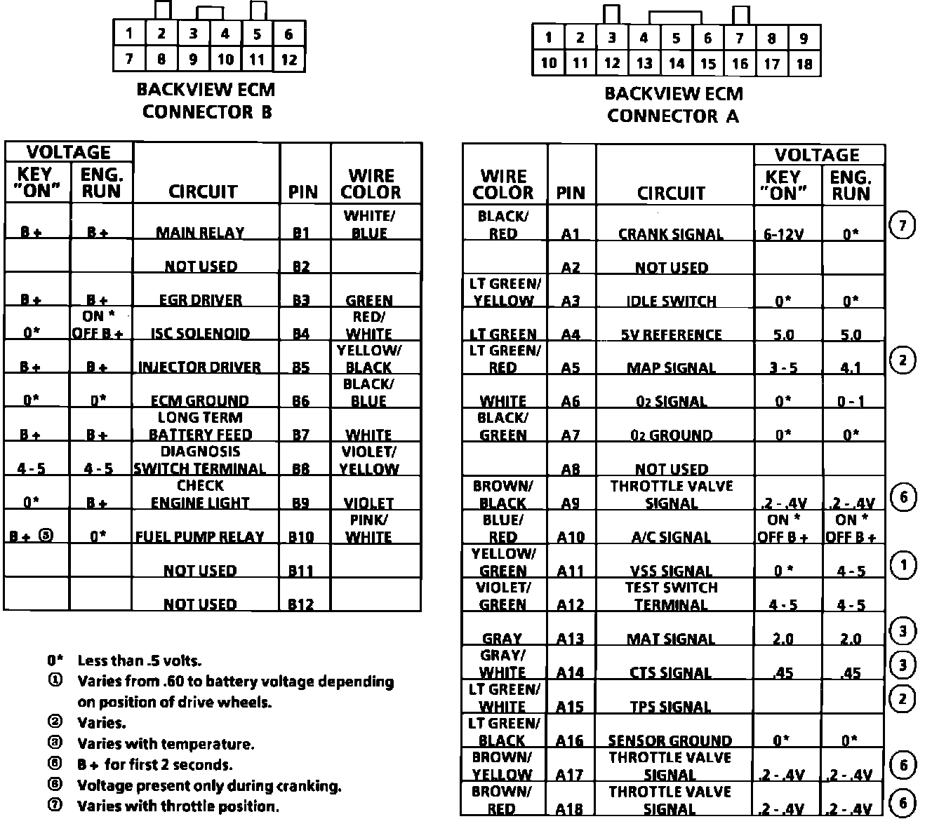 ECM Terminal End View Conventional Ignition System (A/T Only):