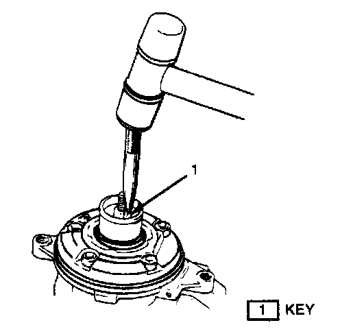 a. Using a plastic hammer and key installing tool J 34880 tip the key lightly.