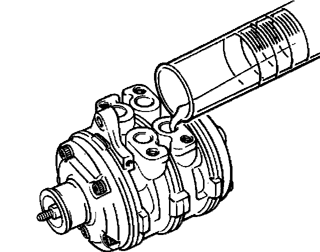 2. When replacing the compressor with a new one, drain 40 cc (2.4 cu. in.) of compressor oil from the new compressor, because it contains approximately 80 cc (2.8 cu. in.) of compressor oil.