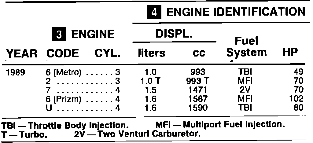 ENGINE IDENTIFICATION: On the line where the engine code appears, read to the right to identify the engine.
