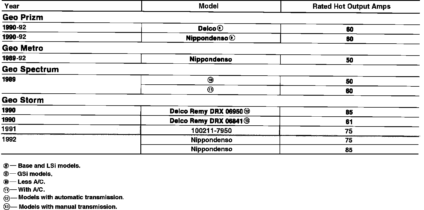 Alternator Specifications: