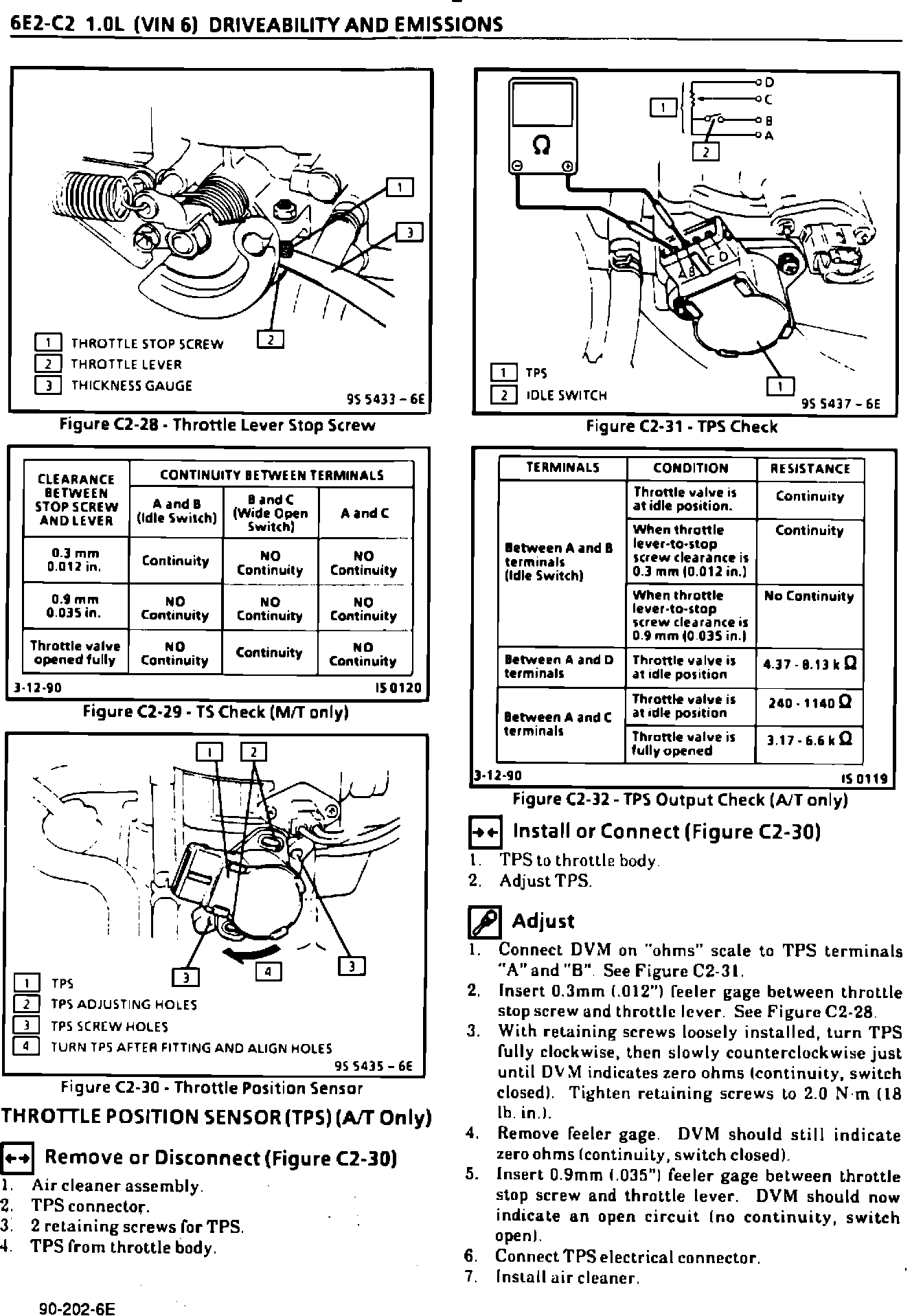 This bulletin serves to revise the Throttle Position Sensor (TPS) Adjustment Procedure (A/T only) in Section 6E2-C2 "Driveability And Emissions" in the 1989 and 1990 Geo Metro 1.OL (VIN 6) "M" Carline Service Manual.