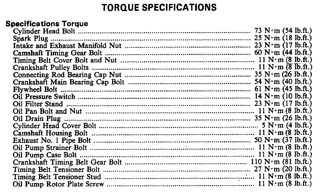Torque Specifications: