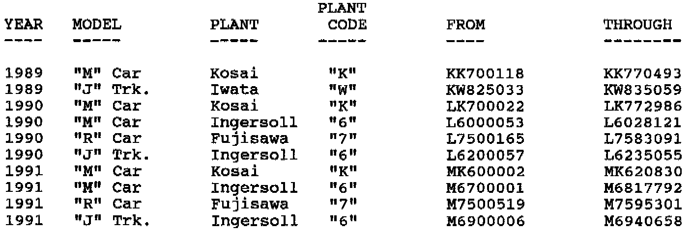 Involved vehicles have been identified by Vehicle Identification Number Computer Listings. Computer listings contain the complete Vehicle Identification Number, owner name and address data, and are furnished to involved dealers with the campaign bulletin. Owner name and address data furnished will enable dealers to follow up with owners involved in this campaign.