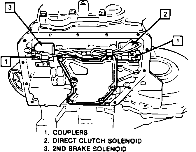 3. Disconnect electrical connectors from direct clutch and second brake solenoids, then remove the solenoids, Fig. 10.