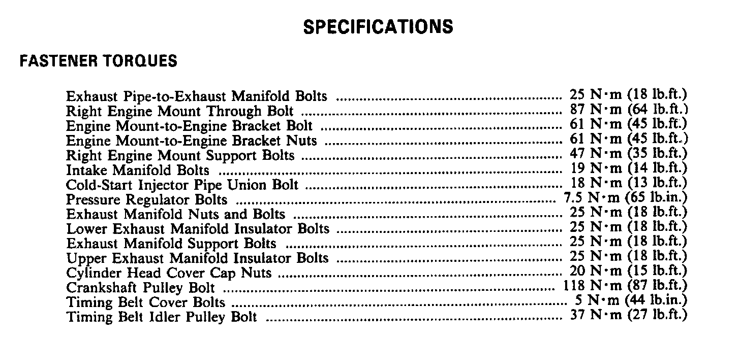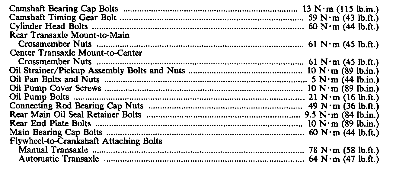 Torque Specifications: