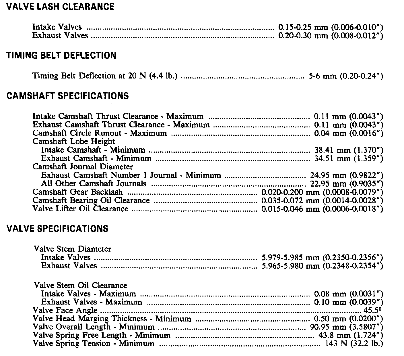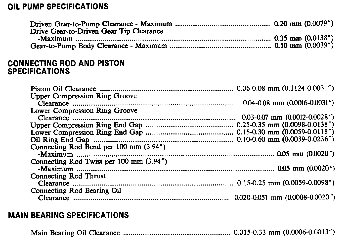 Continued Engine Specifications:
