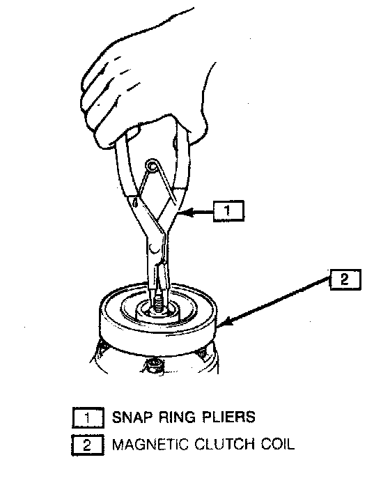 Disconnect the coil lead wire from the compressor housing using snap ring pliers, remove the snap ring.