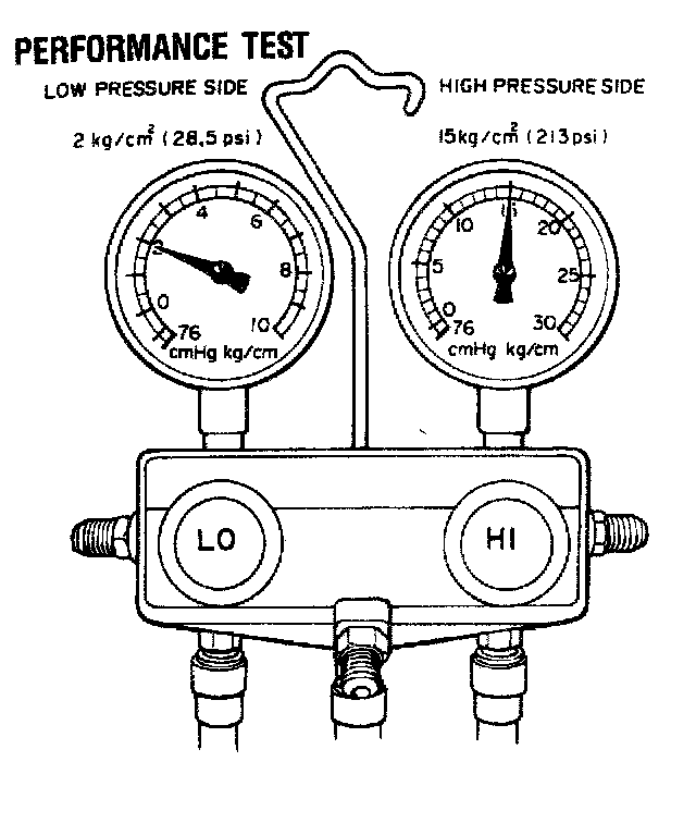 High Pressure Side: 14.5 - 15 kg/sq. cm (206 - 213 psi)