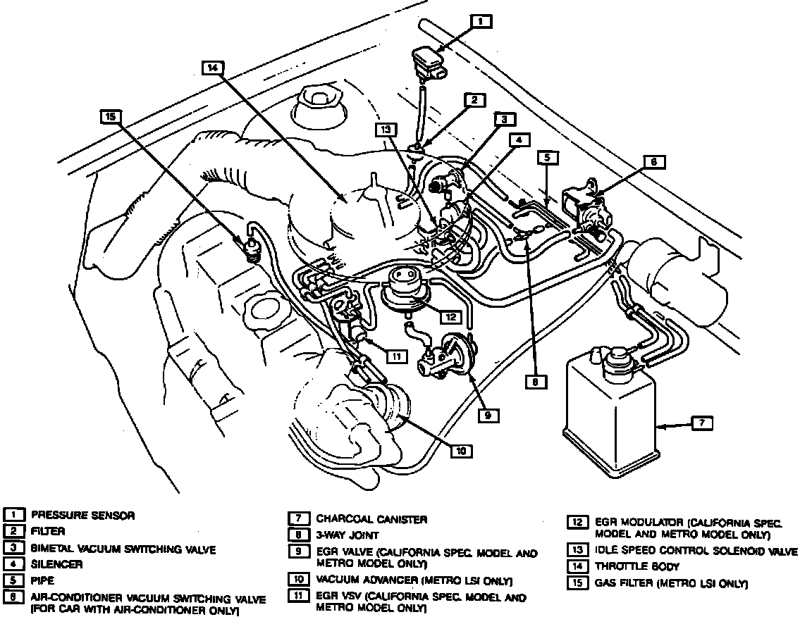 3. Check idle speed, adjust as necessary using the A/C vacuum switch idle screw. Idle should be: