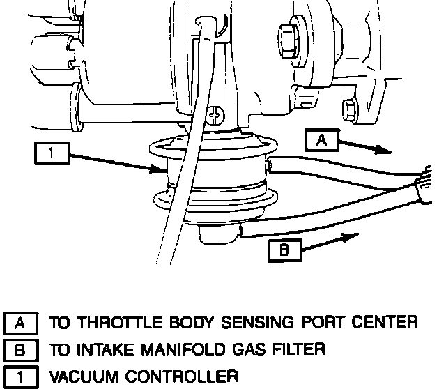 3. Disconnect the vacuum hose at the intake manifold gas filter. Plug the gas filter.
