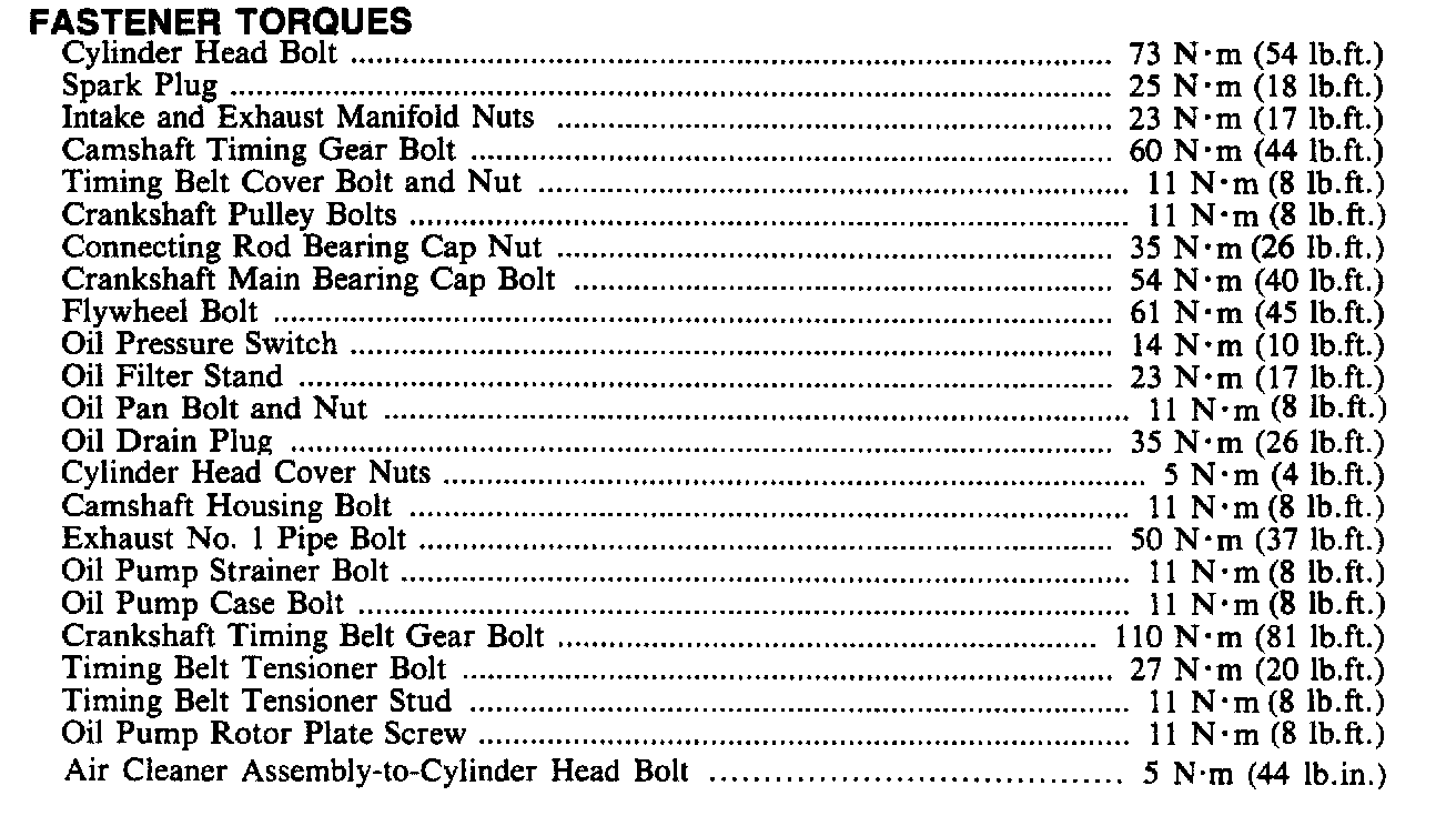 Torque Specifications: