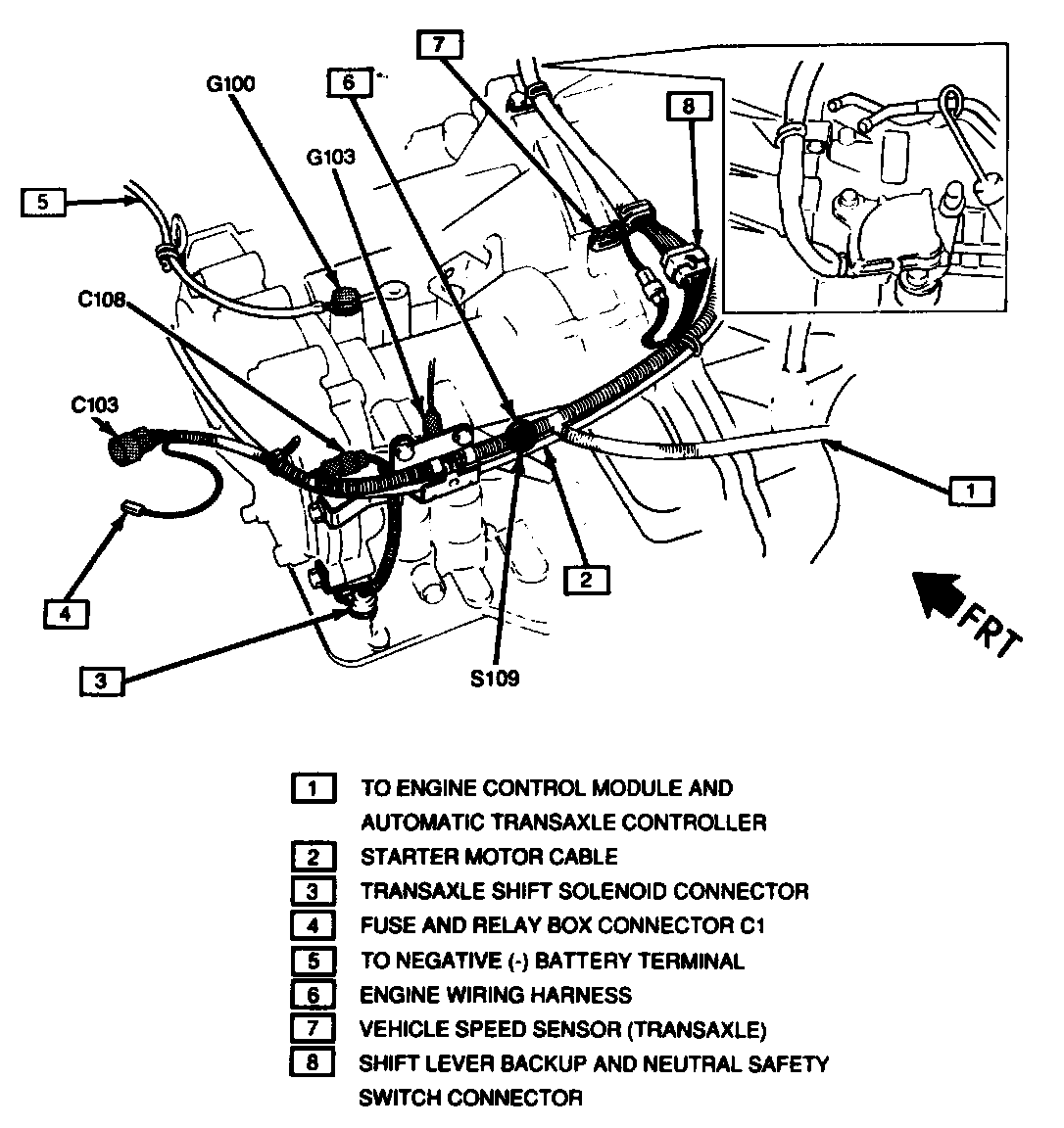 The automatic transaxle uses a combination Neutral Safety Switch and Shift Lever Backup Switch. On the image it is shown as number 8.