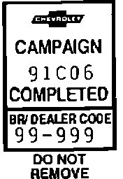 Each vehicle corrected in accordance with the instructions outlined in this bulletin will require a "Campaign Identification Label". Each label provides a space to include the five (5) digit dealer code of the dealer performing the campaign service. This information may be inserted with a typewriter or a ball point pen.