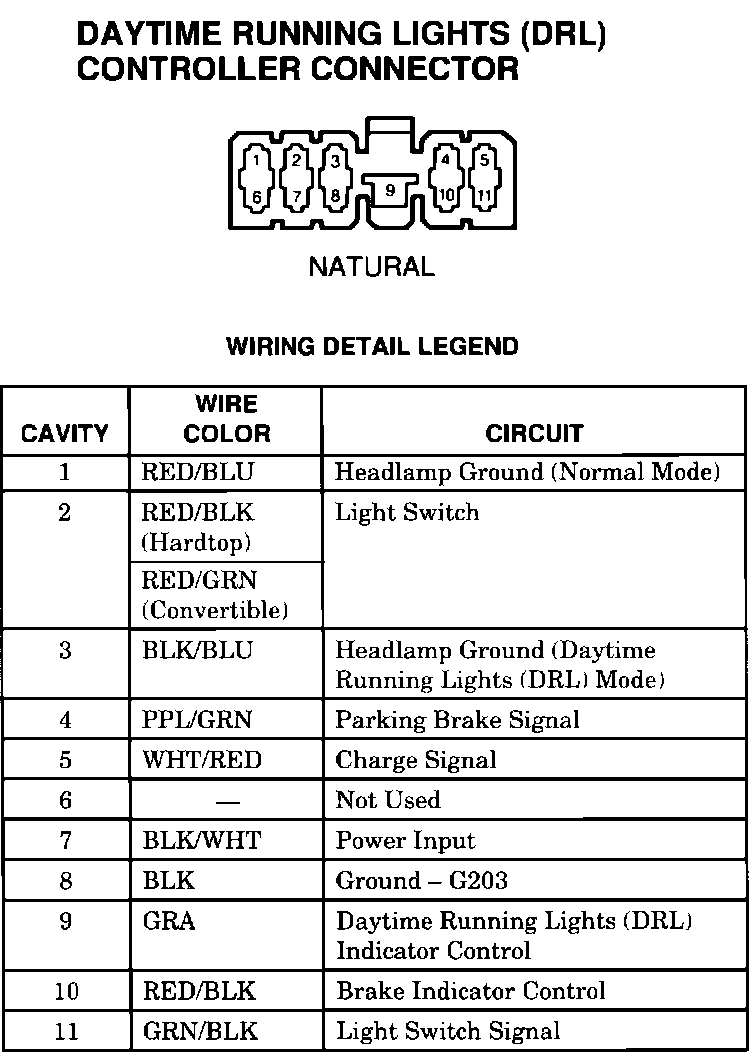Daytime Running Lights (DRL) Controller Connector: