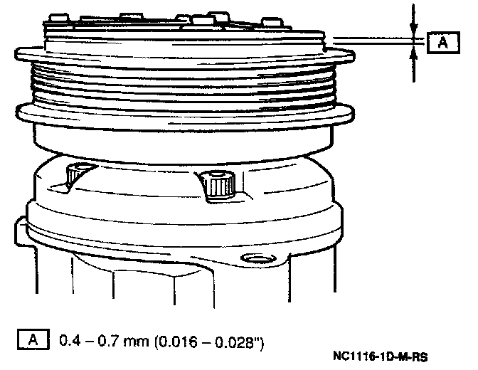 ^ Clearance between clutch pulley and pressure plate to 0.4-0.7 mm (0.016-0.028-inch) by increasing or decreasing the number of shims between them.