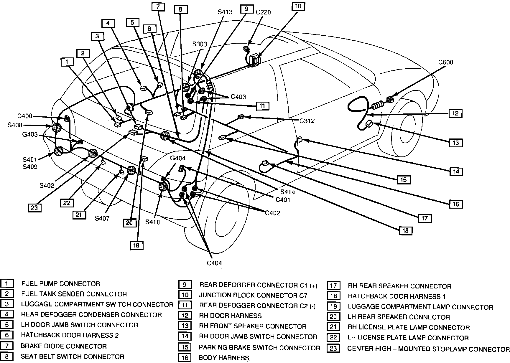 Hatchback Door 1, Hatchback Door 2, RH Door And Body Harnesses: