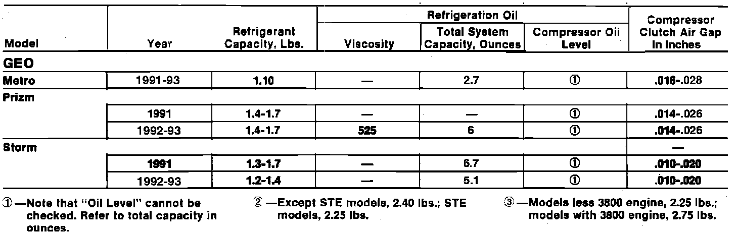 A/C Data Table: