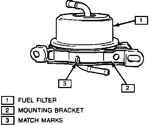 3. Install fuel filter, mounting bracket, and outlet hose as an assembly to the vehicle.