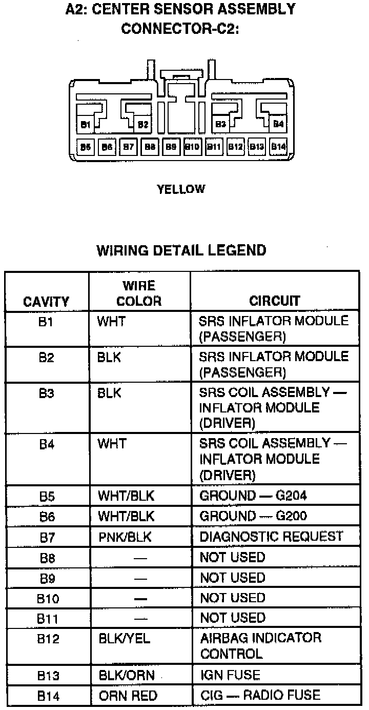 Supplemental Restraint System: Center Sensor Assembly Connector-C2: