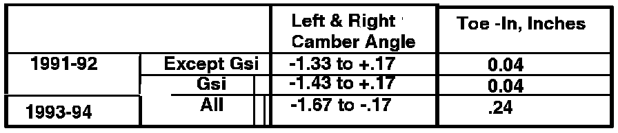 Rear Wheel Alignment Specifications: