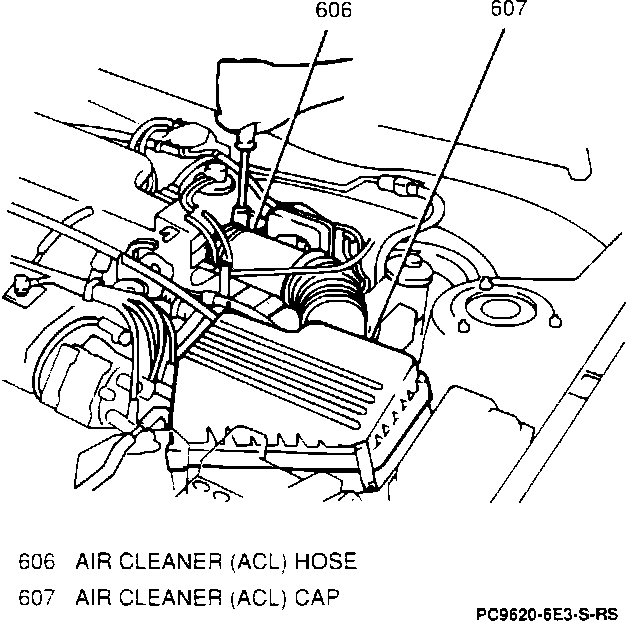 4. Remove ACL cap and hose from engine compartment.