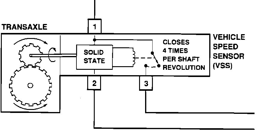 The Vehicle Speed Sensor (VSS) is an electronic relay that is mounted on the transaxle. As the transaxle turns the VSS, the VSS provides the speedometer with a vehicle speed input (voltage pulses).