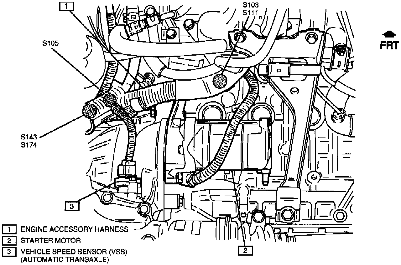 The Vehicle Speed Sensor is located above the differential on the transaxle.