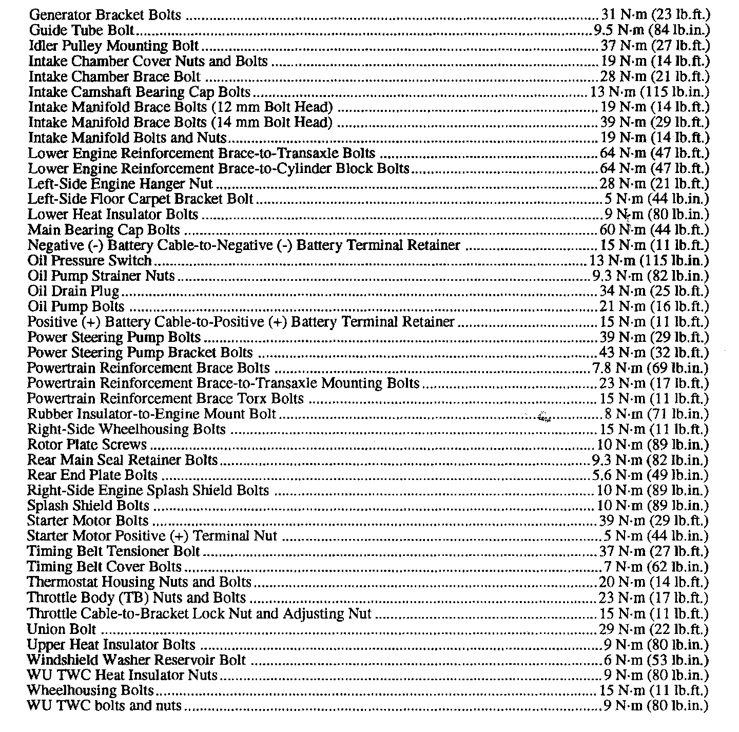 Fastener Tightening Specifications - Engine