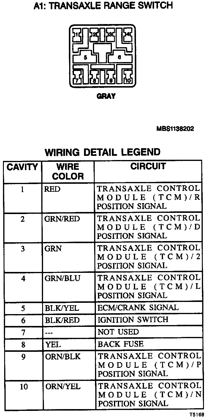 A1: Transaxle Range Switch: