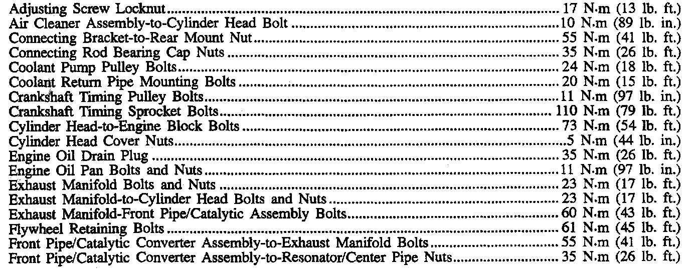 Torque Specifications (1 Of 2):