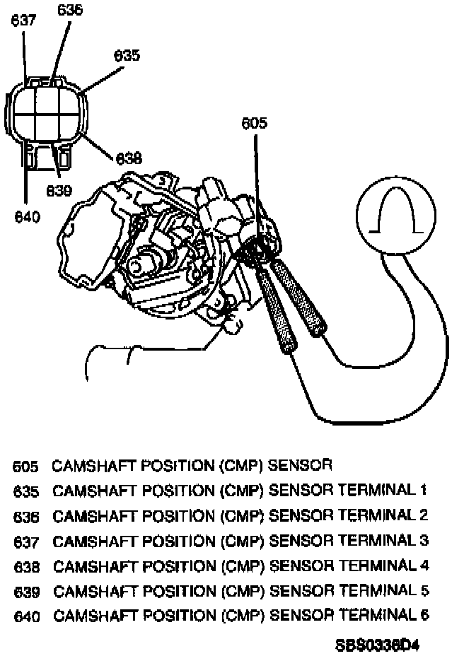 3. The resistance of distributor connector C1 when hot, between terminals 3 and 6, using a J 39200. If the CMP sensor resistance is not between 240 and 325 ohms, replace the distributor housing.